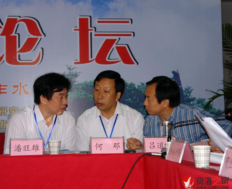 三峽日報傳媒集團總經理潘旺雄、商洛日報社社長何鄧、中國地市報廣告委員會秘書長呂道寧相互交流
