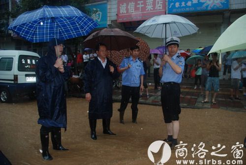 本網訊 (特約記者 牧歌) 7月24日4時至12時,商南縣境內突降特大暴雨,商南縣河水庫及丹江中上游洪水暴漲,太吉河鎮、過風樓鎮和湘河鎮等地出現險情,對于這種情況,縣政府部門早已做好了防汛準備,干部職工在“雙休日”期間不休息,繼續堅守防汛工作崗位,并且在第一時間召開特別緊急會議,要求所有干部職工放下手頭的其它工作,一切都為眼前的防汛查災救災工作為首要重要工作。從今天凌晨5時起,縣廣播(無線)電臺就向全縣發出緊急通知,反復播報商南汛情,通知丹江和茅河兩岸的居民,迅速撤離危險地帶,快速向安全地帶轉移。由于縣河水庫上部突降特大暴雨,洪水順著縣城中部河道向南奔流,水勢越來越兇猛,浪峰一浪高過一浪,很有越堤入城之勢,因此縣防汛指揮部的領導時刻關注著縣河水庫和縣河水的暴漲情況,緊急時刻真是一分鐘一匯報,因為縣城的安全關系到4萬多人的居民生命的安全,最先得知險情是確保人民生命安全的重要情報,真是萬分火急,一刻都不敢馬虎。在此洪水猛漲期間,縣委書記雷雨和縣長陸邦柱已經在丹江邊的過風樓鎮和縣河水庫等地來回奔往好多次了,當得知縣河洪水翻越堤壩和跨越縣河兩座大橋時,不顧個人的安危,迅速來到洋橋即電力局大樓前的縣河道邊察看險情,恰巧被記者搶拍下了難得的場面。