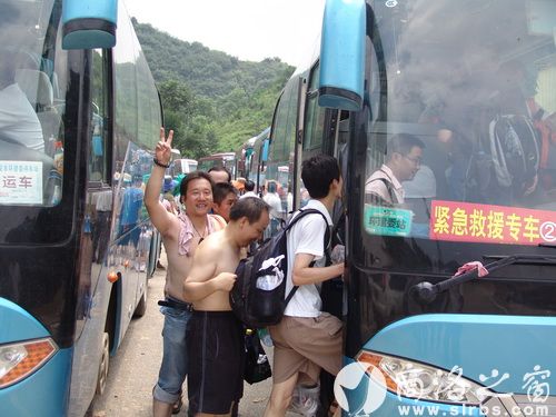 本網訊(文/圖 劉鳳鑫 周 程 方 立) 7月26日下午,商南縣金絲峽門戶區入口處,12輛客運大巴車依次排開,車身上懸掛的“天災無情人有情,上車吧朋友,金絲峽護送您平安回家”的提示語,在一片狼藉的曠野里格外扣人心扉。