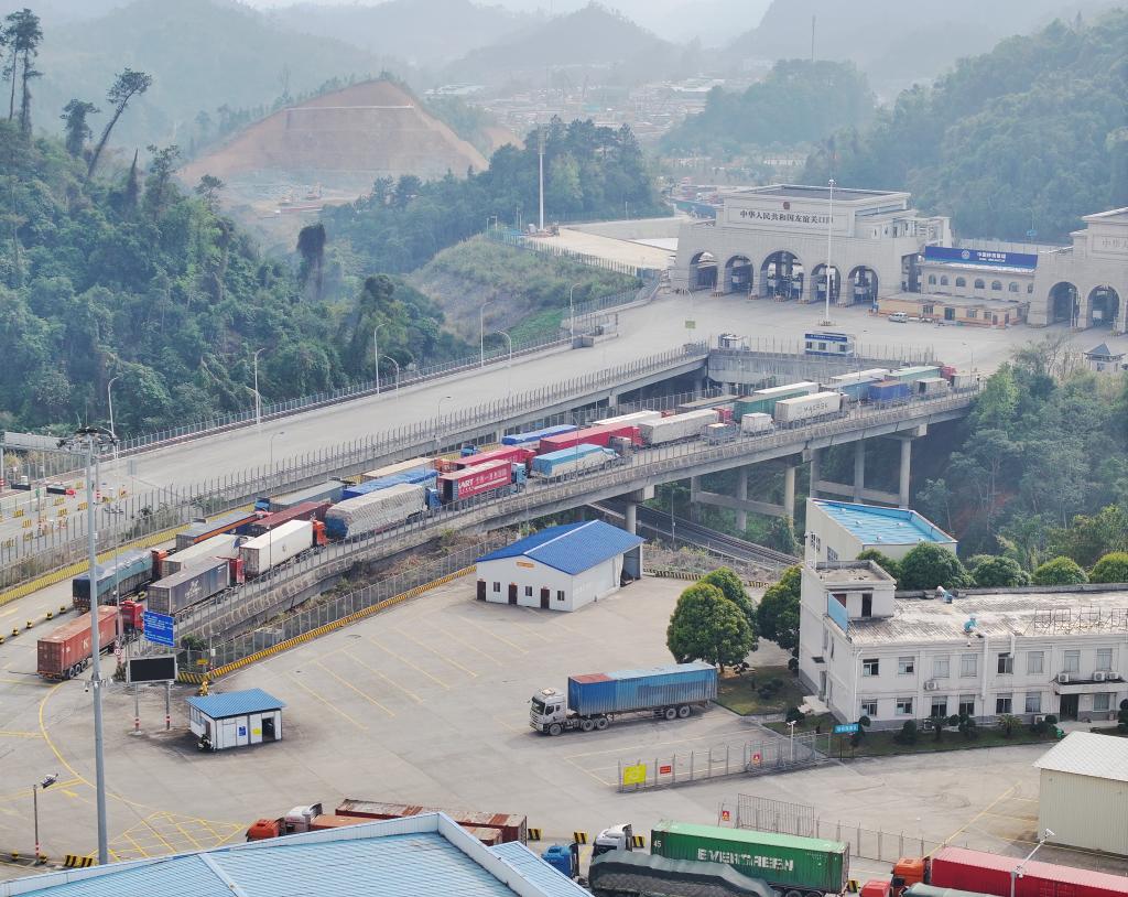 位于崇左憑祥市的友誼關口岸已成為中國通往越南最便捷的陸路大通道之一,兩國商品在這里實現“雙向奔赴”:一輛輛滿載水果的貨車從越南駛入中國-東盟(崇左)水果交易中心,隨后發往中國各地;裝滿機電產品零部件的貨車在中國一側排成長隊駛向越南。