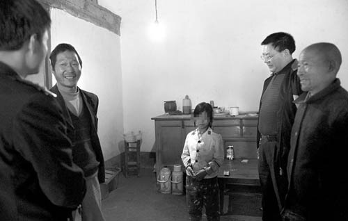 10月30日中午,鄧智權(quán)和父親一起在場上打黃豆。不久,那個幼小的身影王小芳出現(xiàn)了。頓時,商洛市公安局商州分局楊斜派出所所長袁亞龍的電話響起。“所長,那女孩在呢!”兩輛民用面包車悄然進入村莊。見鄧智權(quán)在家,袁亞龍一揮手,同行的市局刑警支隊民警徐尚志,分局刑警三中隊中隊長李永康、教導(dǎo)員李淵、民警李東,楊斜派出所民警李新靈等迅速進入,將其控制。這時,從灶屋里跑出來一個身高約1.3米的小女孩,操著商州話問“做啥呢?”