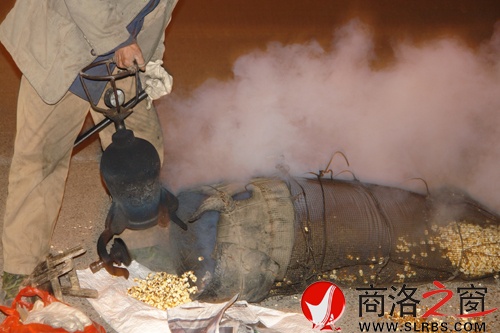 李師傅說,他炸花的器什是祖輩傳下來的,爺爺爆米花走遍了商洛各縣,一個(gè)風(fēng)箱一個(gè)爆米爐,他們那個(gè)年代走到那兒生意都很好,沒錢的人家一碗糊湯也能換來。用木柴將火生起,玉米和糖料攪勻后倒進(jìn)外形似獎(jiǎng)杯的爆米爐里,不停的旋轉(zhuǎn),幾分鐘看爐上的溫度表停止轉(zhuǎn)動(dòng),就能出鍋了。李傅將鐵爐放入一只麻袋,一拉,"砰"響,黃燦燦米花就好了。李師傅將他的爆米比作做人,一粒壞的玉米會(huì)毀掉整個(gè)爐內(nèi)米花的香味,賠掉生意事小,人要是參了假賠掉的將不止"人"的生意。