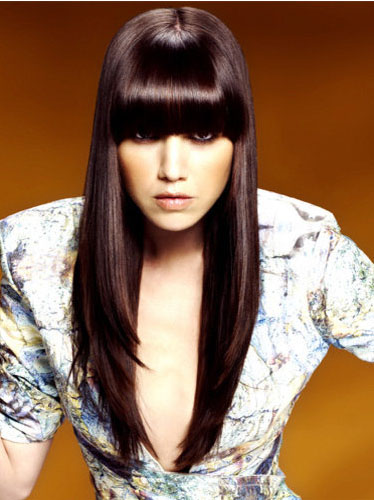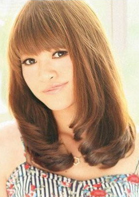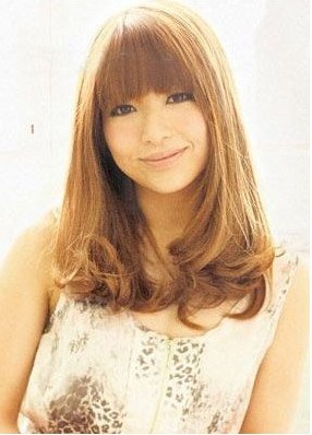 劉海剪的厚重,可留住柔美感,這是很重要的秘訣。色彩是金棕色打底