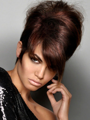 留住厚重的劉海,然后將其余的頭發蓬松向后,似短似盤,視覺上也能起到增加身高的作用,更顯氣質