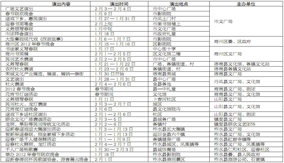 2012年春節期間商洛市文化活動安排