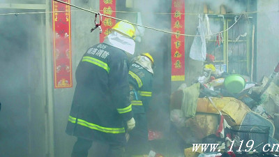 見此情況,指揮員劉欣命令一是4名攻堅組人員佩戴空氣呼吸器進入房屋內部,摸找小孩;二是沿外墻垂直鋪設水帶架設水槍陣地,對房屋大火進行撲救,并掩護攻堅組人員;三是破拆人員砸開南北兩側玻璃,進行排煙。戰斗行動迅速展開。由于室內雜物太多,堆積太高,非常凌亂,并且大多為易燃的棉麻、木頭等物品。失火后,雜物上部形成明火,下部堆積物形成陰燃,形成了大量的煙霧,進入室內的消防員,根本無法看清室內情況,只能靠雙手去摸找。在水槍的掩護下,4名攻堅組人員冒著高溫、濃煙的熏烤,在雜物內翻找,并憑著對人體觸感、結構的判斷,搜救被困女孩。此時,情況萬分危急。由于房間很小,窗口很小,雜物燃燒已有一段時間,屋內空氣、氧氣越來越少,一氧化碳等有毒氣體越來越多,一個成年人持續吸入高溫的濃煙達5分鐘后,會窒息而死,更何況被掩埋在屋內的是一個僅僅5歲的女孩。