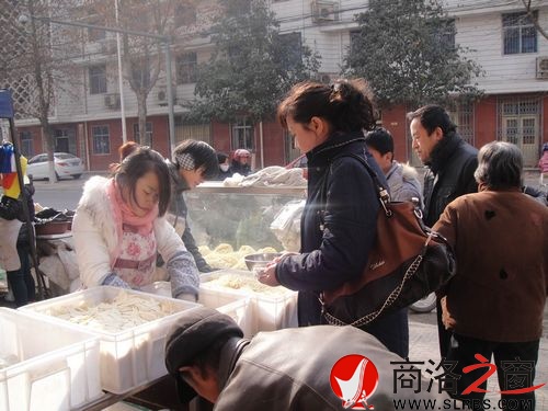 僅在團結(jié)路這一條街上,賣鮮面條的店就有五六家,幾乎每隔一二百米就有一家這樣的店。售賣的面條也大同小異,韭葉、大寬、二寬、刀削面、拉條子、面片、餃子皮應(yīng)有盡有。記者在走訪中了解到,經(jīng)營此類面條店的大部分都是外地人,以四川、重慶居多,當(dāng)?shù)厝撕苌佟2僦鴿庵氐乃拇谝舻牡曛魍鮿潘筛嬖V我們:“這一行真的蠻辛苦,你們當(dāng)?shù)厝硕疾辉敢飧桑訏甑亩际切″X。”王勁松今年38歲,6年前一家人來商洛做賣面條的生意。每天凌晨四點起床,晚上8店后才能休息,他一天的工作就是和面、壓面、賣面、送面。問及為何做這一行,他說:“我來商洛以后發(fā)現(xiàn),當(dāng)?shù)厝讼彩趁媸常瑢γ鏃l的需求量也大,而且對面的花樣要求也多,有人要寬面,有人要細面,還有人要面片和餃子皮,在我們老家面食就沒這么講究,于是我就產(chǎn)生了興趣;另外這一行對技術(shù)要求也不高,從西安買回來做面條的一套工具就可以開工,我媽媽和妹妹也可以幫我。”在和記者交談的半個小時里,不斷有顧客進來買面,雖然都是買兩三塊錢的,王勁松還是很熱情地招呼,抓面、稱重、找零一點不含糊,整個過程不超過一分鐘。“我這速度真的是練出來的,到臨近飯點的時候,顧客是最多的,我一個人都忙不過來,必須叫我姐姐幫我。”說起這一行的辛苦,王勁松的姐姐深有體會,她每天早上準(zhǔn)時4點就起床,先是把買回來的面粉倒進和面機里,加水?dāng)嚢瑁缓髮璩尚鯛畹拿娣蹐F放到壓面機里反復(fù)壓,薄厚適中時再切成面條;這些還算輕松的,最辛苦的是制作手工面,要手工和面、搟面,一大盆的面粉和成面團再搟成勻?qū)嵉拿嫫麄€過程常讓她腰酸胳膊痛。