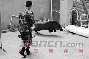 6月6日,一頭野豬突然闖進了商洛學院校區后又沖上街頭,為了防止野豬傷人,當地政府緊急調集公安、林業等部門百余人圍堵,野豬最終在城中村一處巷道被捕殺。