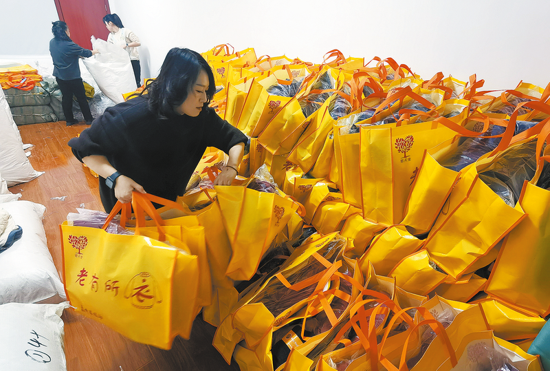 “快來幫忙抬一下,拿不動了!”“慢點搬,裝護腰的袋子太重了……”1月18日中午,商洛彩虹公益中心的10多名志愿者顧不上吃午飯,就將剛運抵商州的一貨車“老有所衣”物資搬運到庫房,并立即把羽絨服、羊毛襪子、護腰、護膝進行分裝,只為盡快將溫暖包送到山區老人手中。