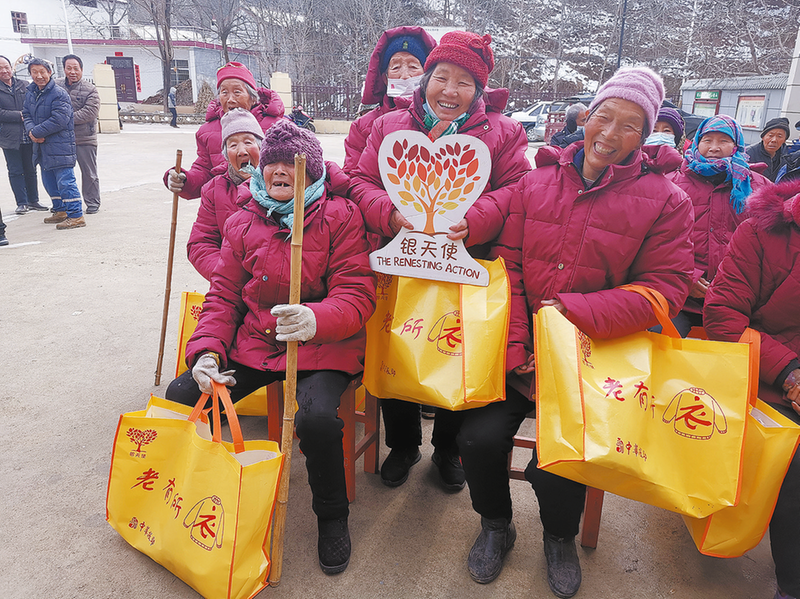 “老有所衣”溫暖包活動得到了愛心企業的支持。1月31日,丹鳳縣蔡川鎮的老人們喜領溫暖包。
