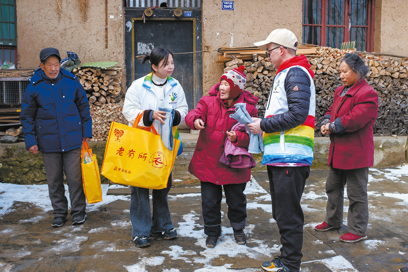1月20日,志愿者上門為偏遠山村的老人送去溫暖包。