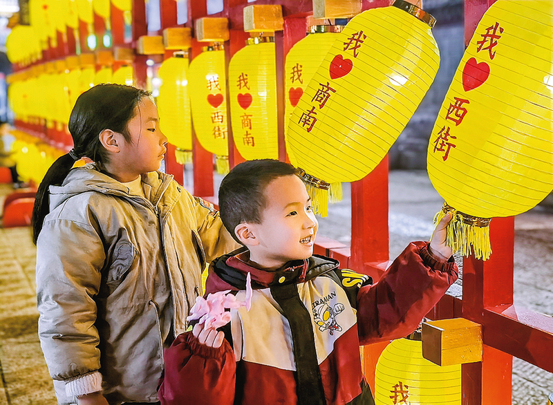 ⑦2月20日,在商南縣城西街古城里,流光溢彩的夜景燈光和夜市的煙火氣息融合在一起,營造出濃濃的節日氛圍。