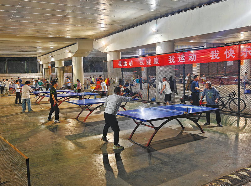 5月11日傍晚,商州區立交橋下正在運動健身的市民。