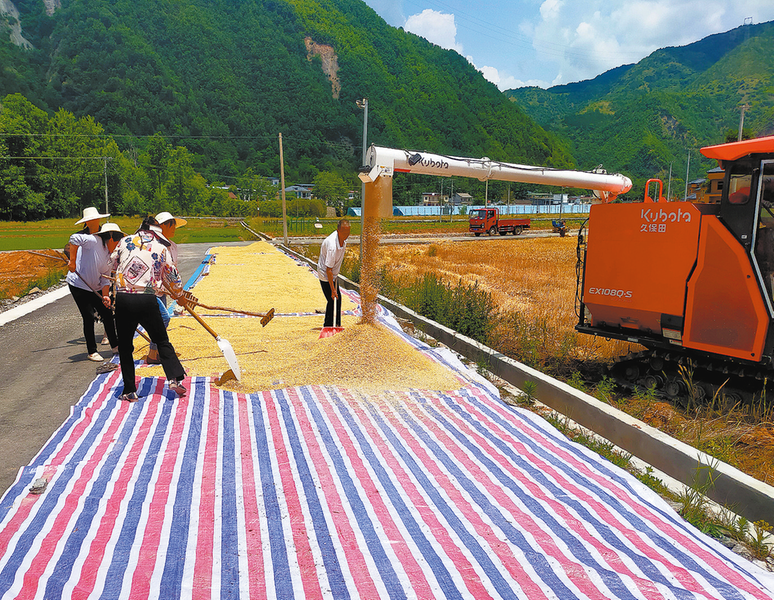在距離米糧鎮70公里的山陽縣色河鋪鎮,農戶們也在搶抓利好天氣,全力以赴收夏糧。據悉,該鎮小麥種植面積達5300畝左右,預計近期收割完畢。色河鋪鎮黨委書記趙軍表示:“為確保糧食豐產達收,色河鋪鎮全力加強耕地保護和用途管控,積極推廣糧食生產和實用新技術,糧食綜合生產能力穩步提升。”