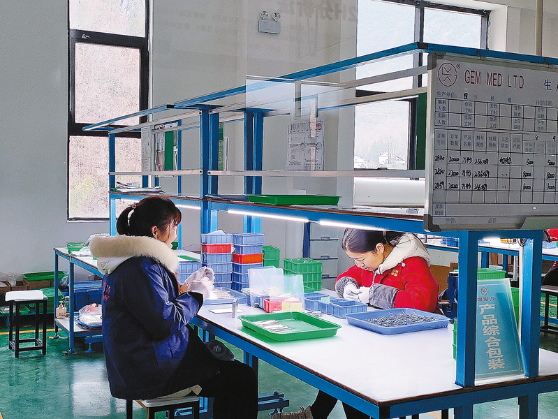 2月14日,在商洛瑯璽光電科技有限公司,車間內一片忙碌景象。公司設有獨立配套的標準化廠房,專業生產十三大系列1000多種型號規格的醫療高頻電子手術用品,形成了完整的產業鏈。目前,公司帶動附近100多人務工,產品遠銷國外。 (本報見習記者 孫遠飛 攝)