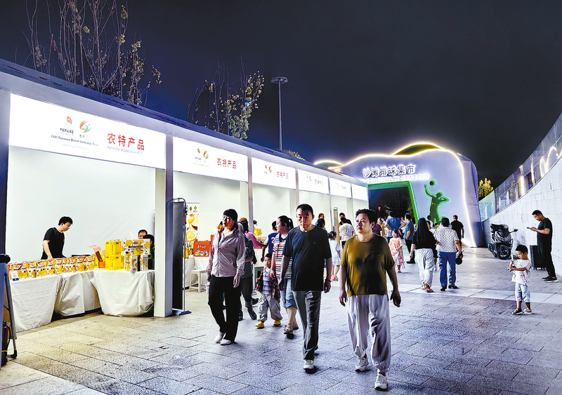 7月9日晚,秦嶺博物館廣場旁的沙灘排球集市人聲鼎沸,集中展示了商洛特色美食、農產品及文創產品,吸引了大量市民和游客觀光選購。 (本報記者 張 英 攝)