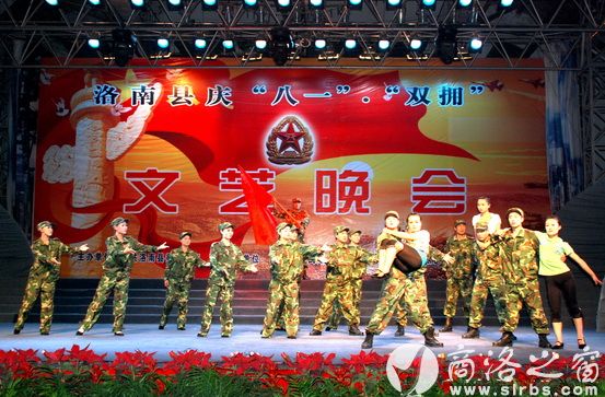 本網訊(何勇 攝) 7月27日晚,由中共洛南縣委宣傳部主辦,縣人民武裝部、縣民政局、縣文化廣播影視局承辦的“洛南縣慶八一雙擁文藝晚會”在縣室內體育場內此精彩上演。為在場的廣大武警官兵、駐洛部隊指戰員及社會群眾呈現了一場視聽盛宴,譜寫了一曲新時期軍民團結、共建和諧的動人樂章。