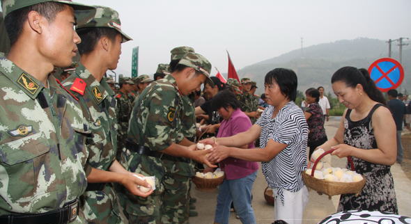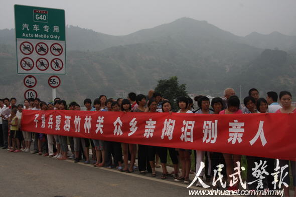經過武警陜西總隊400余名官兵連續11天的奮戰,8月7日,陜西省商洛市丹鳳縣竹林關鎮人民群眾已基本恢復正常生產、生活秩序。武警官兵凱旋時,竹林關鎮的鄉親們紛紛涌向部隊途經的路口,揮淚相送、依依惜別。