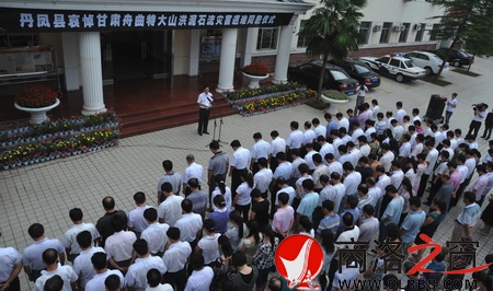 丹鳳縣縣直機關領導及干部職工在縣委大院內舉行哀悼活動(彭剛軍 何衍貴 攝)