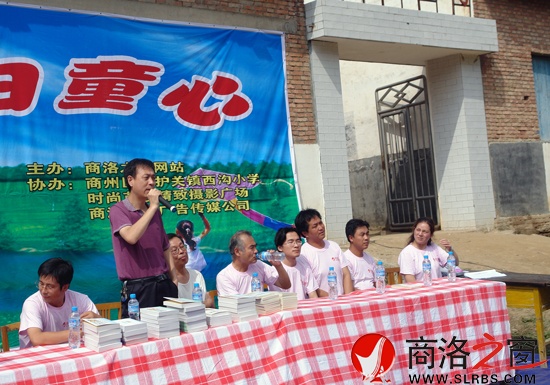 "山美,水美,咱們牧護(hù)關(guān)的人更美……"活動(dòng)在主持人對(duì)牧護(hù)關(guān)的贊美聲中開始了。商洛日?qǐng)?bào)前任總編張中山向現(xiàn)場(chǎng)的孩子們講述了牧護(hù)關(guān)古老的歷史并贈(zèng)送了書籍。商洛日?qǐng)?bào)社總編劉少鴻的書籍由副總編牛建宏代送給學(xué)校、周末版編輯部主任郝忠慧的書籍由商洛之窗網(wǎng)站副站長(zhǎng)代送給學(xué)校。當(dāng)?shù)弥搪逯熬W(wǎng)站要在牧護(hù)關(guān)西溝小學(xué)舉辦"回歸童心"主題公益活動(dòng)時(shí),陜西省書法家協(xié)會(huì)會(huì)員張?jiān)床?、江蘇省知名書法家楊峰在百忙之中抽出時(shí)間前來參加并將現(xiàn)場(chǎng)撰寫的書法贈(zèng)送給學(xué)校和孩子。為了把自己的快樂帶給孩子們,商洛日?qǐng)?bào)社編報(bào)部副主任牛新平在活動(dòng)的前一天晚上,耗費(fèi)兩個(gè)多小時(shí),專門創(chuàng)作了一幅精美的漫畫。主持人呂百超現(xiàn)場(chǎng)亮出自己的絕活"貫口相聲",并朗誦了《童話詩》。瞿珊珊、劉文奇和網(wǎng)站的工作人員分別為孩子們演唱了《種太陽》、《但愿人長(zhǎng)久》等歌曲。為感謝我們的到來,孩子們還表演了兩個(gè)自己編排的舞蹈,學(xué)校里的一位老師現(xiàn)場(chǎng)改唱了歌曲《常回家看看》?;顒?dòng)結(jié)束時(shí),應(yīng)邀的領(lǐng)導(dǎo)和西溝小學(xué)校長(zhǎng)一起為孩子們分發(fā)了200多張照片,之前在商洛日?qǐng)?bào)周末版報(bào)道過此事。