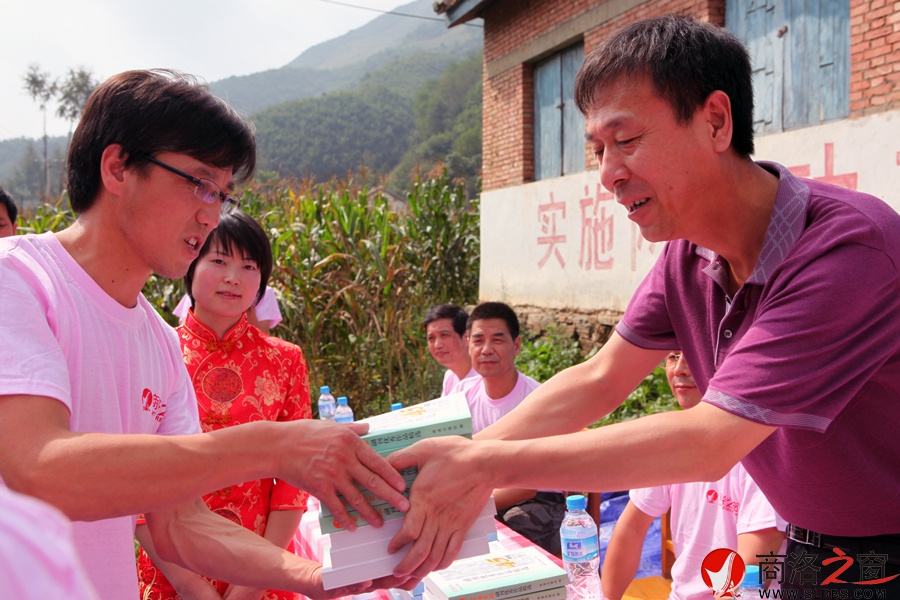 商洛日報社總編劉少鴻的書籍由副總編牛建宏代送給學校