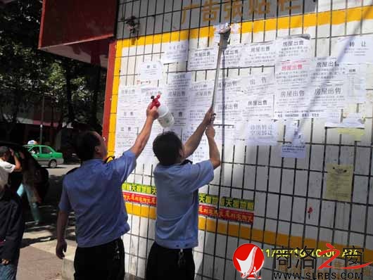 本網訊 (記者 李小龍) 近日,市城管監察支隊組織開展創建城市管理示范街(路)綜合整治活動,在市區主要路段設置非機動車輛停放點100余處,在文衛路、安居巷、迎賓路等路段醒目位置設置“廣告宣傳欄”5處,進一步規范群眾亂貼亂畫、亂停亂放等不文明行為。圖為執法人員現場清理廣告宣傳欄。