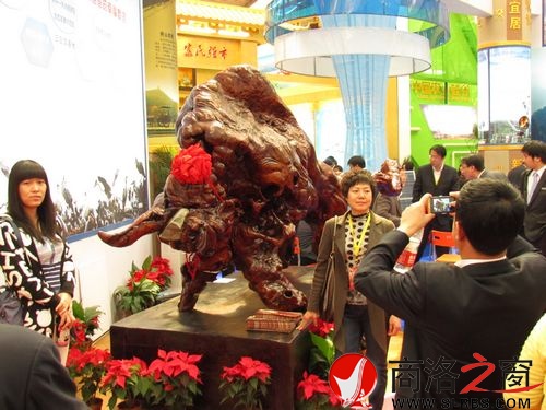 商洛展廳里 一尊重達2000多斤的藝術根雕牛也吸引了大家的眼球