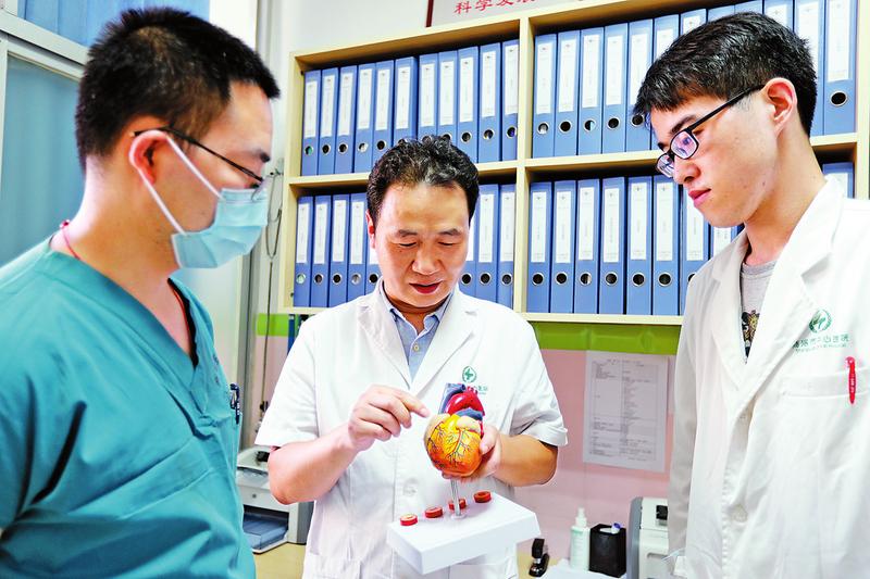 王文鋒非常珍惜這個來之不易的深造機會,深感責任重大,不敢懈怠。他迅速適應學習單位“朝八晚九午不休”的工作狀態,積極融入國內一流心血管團隊,得到了眾多專家的熏陶和指點,特別是他的導師、我國著名心臟病專家呂樹錚教授熱忱為師,樂于傳道授業又幽默風趣,對王文鋒提出的問題總是知無不入淺出、層層剖析,從心臟解剖、生理病理到各種器械、設備性能,從冠脈造影到球囊擴張、支架植入,從讀圖識圖到策略選擇,從基本操作到冠脈旋磨、逆向開通血管等高難度技術,無不細心講解,或畫圖解析,或親自示范,直到學生弄通弄懂為止。呂教授還在手術室鉛屏外現場指導王文鋒等學生做心肌梗死介入手術,每次都從細節入手,詳細講解指導,這些場景讓王文鋒至今記憶猶新。