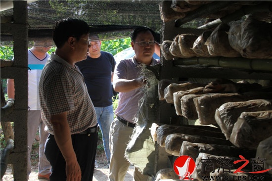 考核組一行查看香菇種植大棚生產(chǎn)情況