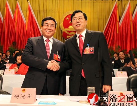 魏增軍與新當(dāng)選的市長楊冠軍親切握手