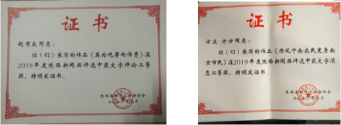 通過全體采編人員的不懈努力,商洛日?qǐng)?bào)在2020年度新聞獎(jiǎng)評(píng)選中獲得優(yōu)異成績(jī),其中本報(bào)記者方立、方方采寫的消息《丹鳳千余農(nóng)民變身南京市民》,趙有良撰寫的評(píng)論《莫為觀摩而作秀》獲2019年度陜西新聞二等獎(jiǎng),本報(bào)記者南書堂、汪锳采寫的通訊《從“不堪行”到“變通途”》,本報(bào)記者趙有良、汪锳、賈書章采寫的通訊《一位鄉(xiāng)土作家的“農(nóng)民課堂”》獲2019年度陜西新聞三等獎(jiǎng);《黃河明珠天鵝城》《山鄉(xiāng)婚禮記憶》等5件作品獲2019年度中國(guó)地市報(bào)新聞獎(jiǎng)一、二、三等獎(jiǎng),《我市跨入“國(guó)家森林城市”行列》《全國(guó)最大的數(shù)字化益生元(菊芋)制造中心商州建成》等13件作品獲2019年度商洛新聞獎(jiǎng)一、二、三等獎(jiǎng)。100多篇報(bào)道被“學(xué)習(xí)強(qiáng)國(guó)”平臺(tái)及中、省主流媒體刊發(fā)推送。本報(bào)副總編、主任記者趙有良被陜西省新聞工作者協(xié)會(huì)授予“陜西省優(yōu)秀新聞工作者”稱號(hào),并入選陜西省2019年宣傳思想文化系統(tǒng)“六個(gè)一批”人才。