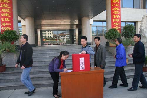 4 月23日,在全國人民深切悼念玉樹地震遇難同胞之際,商洛公路職工再次體現了"一方有難,八方支援"的抗震救災精神,組織了支援災區捐款活動。局機關70多名在職干部職工慷慨解囊,一些在外出差的干部職工也紛紛打電話委托同事代為捐款,以實際行動幫助災區人民渡過難關,重建家園,共捐款6100元。