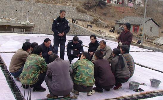年關將至,針對各類侵財性案件多發的特點,商洛市公安局專門組織廣大民警深入村組、社區進行走訪,向廣大群眾宣傳冬季治安防范常識,提高他們的自我防范的意識。圖為鎮安縣公安局回龍派出所和平村警務室民警深入村組向群眾介紹和傳授安全防范的小竅門。