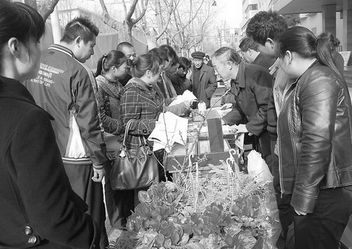 市農科所采取市民群眾喜聞樂見的形式,宣傳科技知識。圖為市農科所三月十八日在北新街展出食用菌產品、脫毒甘薯新品種、脫毒微型薯、蔬菜新品種、玉米雜交種商玉二號、花卉苗木等。(黨丹洲  陳朝陽 攝)