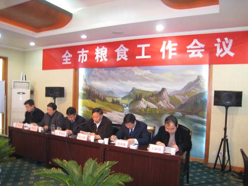2009年3月9日上午,全市糧食工作會議在商洛市香菊大酒店召開,參加會議的有各縣區糧食局長,市級有關部門負責人,市直糧食單位負責人和市糧食局機關科以上干部。會上市糧食局局長侯豐厚同志傳達了全省糧食工作會議精神,對我市2008年糧食工作進行了總結回顧,安排部署了2009年全市糧食工作,明確了2009年糧食工作的總體目標和主要任務,對認真做好2009年的糧食流通體制改革和流通工作進行了全面部署,提出了更高的要求。劉永康副局長在會上作了重要發言,安排部署了全市糧食清倉查庫工作,并對此項工作具體提出了要求。市政府副秘書長李育善同志到會并作了十分重要的講話。