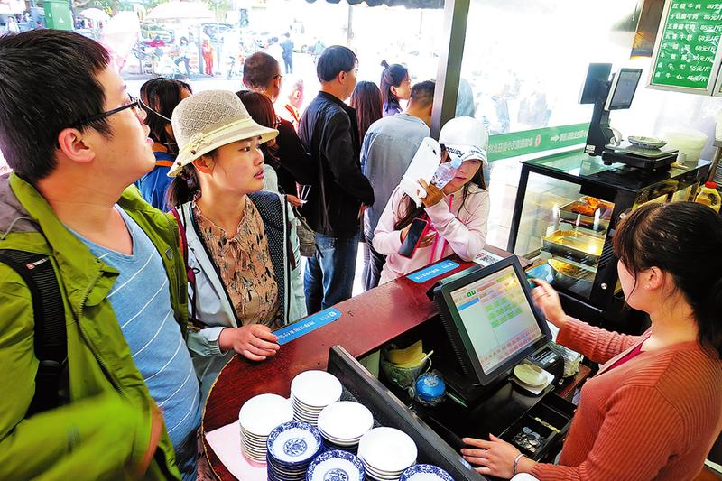 南京是一個(gè)包容性極強(qiáng)的城市,南北菜品匯集于此,同時(shí)快節(jié)奏的都市生活,也為丹鳳人經(jīng)營的面食提供了市場。這是著名的南京大排檔,來南北客,品南北菜。(8月26日攝)