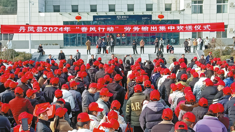 2月18日上午,丹鳳縣2024年“春風行動”勞務輸出集中歡送儀式在縣火車站廣場舉行。來自全縣的733名外出務工人員,乘坐政府部門提供的免費專車,赴江蘇南京、安徽蕪湖、浙江溫嶺等地務工,開啟新一年的就業增收致富路。 (本報通訊員 鄭志財 攝)