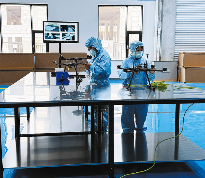 六月十日,位于丹鳳縣的中天禹辰高端無人機制造產業園車間內,工人們穿著隔離服精準操作,一臺臺外表炫酷、功能強大的無人機就在這里誕生。該項目由陜西中天禹辰航空智能科技有限公司投資建設,項目總投資五點八億元,建成后將填補陜南地區高端無人機研發制造的空白,推動商洛低空經濟與數字經濟深度融合發展。