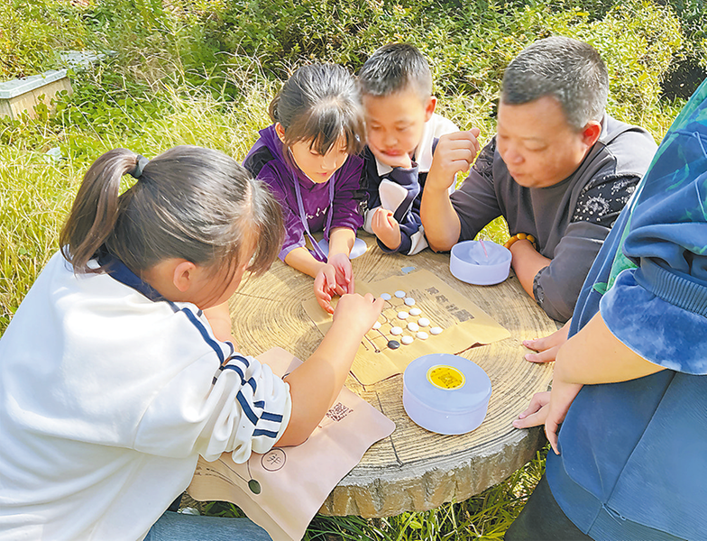 王曉勇(右一)和研學實踐的孩子們下農閑棋“狼吃娃”
