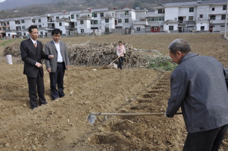 隨后,朱鴻雁和鎮黨委書記方德軍又來到米糧川金礦移民安置點,光明村孫家溝搬遷戶吳傳林的魔芋基地,送給吳傳林兩本《魔芋栽培技術》資料,得知搬遷戶吳傳林在川道租16畝發展魔芋產業,朱鴻雁說,搬遷戶能從高山住到河川,居住條件改變了,又設法租地發展產業致富,你給全縣移民搬遷戶起到了帶頭作用,我們會支持你的。并對米糧鎮今年發展1500畝魔芋產業,增加農民收入的做法給予充分肯定。