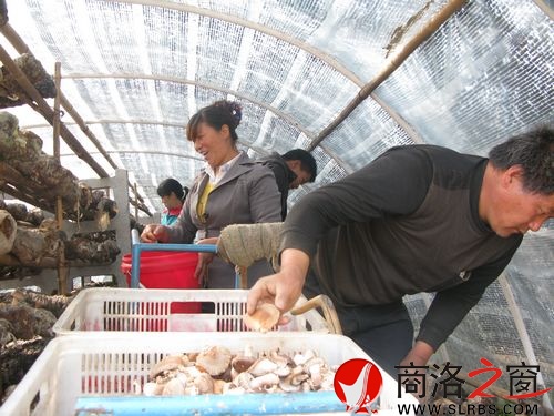 當地留守婦女和殘疾人在食用菌大棚里采摘香菇
