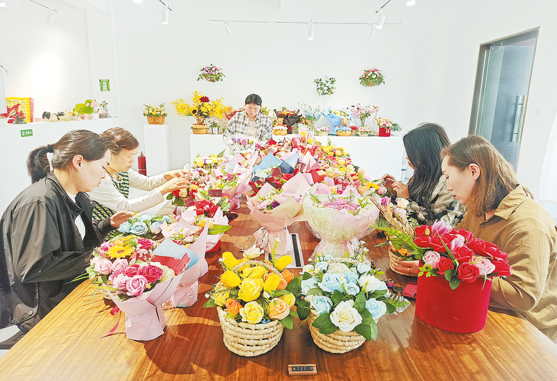 商洛德潤寶實業有限公司的工人在制作香皂花
