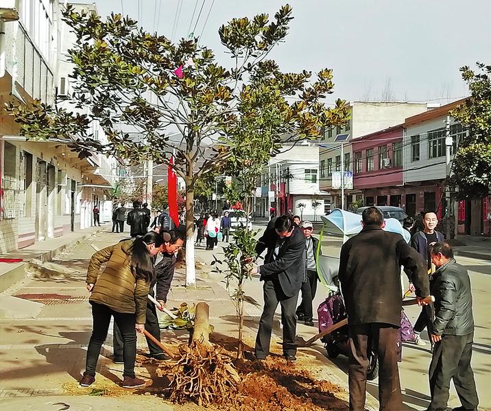 各村如火如荼地發展產業,鎮上的幾個單位也采取支部聯建的方式,與村支部結對子傾情幫扶,農業綜合、文衛支部結合專業特長開展走村入戶服務,鎮機關支部則對鎮街道進行了環境整治提升,對主街道和支干道兩旁樹木進行補植和換種,濫搭亂建亂種現象得到遏止,中小學生們為新植樹木扎起了圍欄,干部群眾齊動手,使整個街道的環境有了明顯改善。
