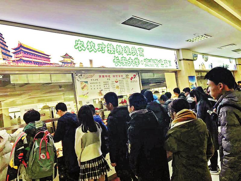去年11月,長(zhǎng)安大學(xué)進(jìn)一步為商南縣提供支持,在該校渭水校區(qū)“樹惠園”學(xué)生食堂,提供100多平方米區(qū)域開設(shè)一個(gè)食堂端口,即“商南縣扶貧窗口”。在這個(gè)扶貧窗口,經(jīng)營(yíng)者專門用商南縣的農(nóng)特產(chǎn)品作食材,做出具有商南風(fēng)味的菜肴。運(yùn)營(yíng)后,有時(shí)一天的營(yíng)業(yè)額高達(dá)7000元,不到50天,營(yíng)業(yè)額就突破了20萬(wàn)元。開辦這一食堂端口有力促進(jìn)了該縣農(nóng)特產(chǎn)品的銷售,而且做出了“商南味道”,提升了商南縣農(nóng)特產(chǎn)品的知名度。