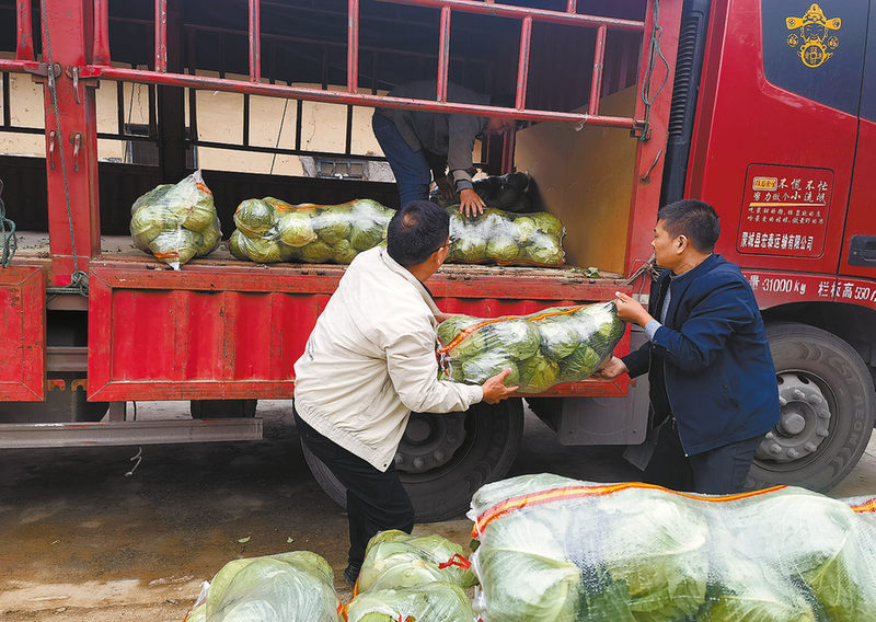 11月9日,走進十里坪鎮梁家墳村種植大戶許少武的包菜地,只見村民正在手腳麻利地對包菜進行采摘、裝袋、搬運、稱重、裝車,地頭不時傳來爽朗的笑聲。