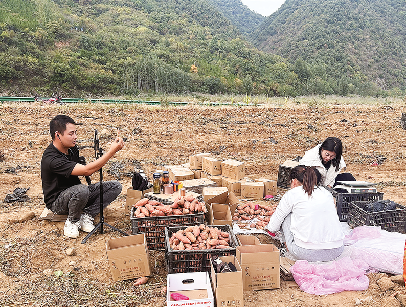 “以前我們的蜜薯都是通過批發(fā)或微信零售的方式進行售賣,收益低、效率慢。現(xiàn)在通過電商融合發(fā)展,邀請主播到田間地頭直播,幾個小時就把我們的第一批蜜薯銷售完了。”秦嶺蜜薯種植基地工作人員魏康說。