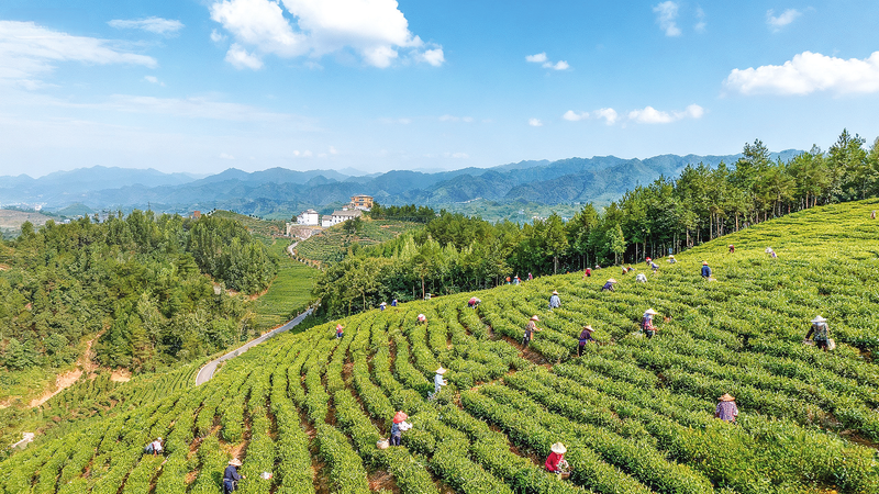 茶農(nóng)在商南縣雙山茶葉基地采春茶。(資料圖片)