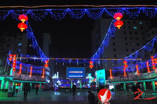 春節前夕,洛南縣園林所在縣城中心廣場安裝了百余盞紅燈籠、流星燈和LED燈帶,五顏六色的燈飾將廣場妝扮得流光溢彩,格外美麗,營造了濃濃的年味。(何勇 程剛 攝)