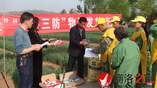 本網訊 5月6日,洛南縣植保站和石門農技站在石門鎮橋河村,就小麥“一噴三防”技術作了詳細培訓,共培訓100余人,并給群眾免費提供磷酸二氫鉀50公斤、尿素50公斤、吡蟲啉5公斤、三唑酮50公斤,出動噴霧器14臺,示范面積500畝,輻射帶動全鎮噴防2000畝,以確保小麥不發生病蟲害。(冀菊梅/攝)