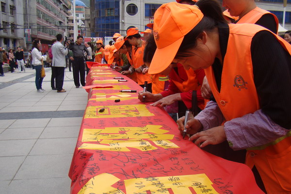 5月24日上午,我縣婦聯等單位在縣城中心廣場舉行創建省級園林縣城簽名活動,推動創園工作深入開展。縣委常委統戰部長付強講話,副縣長安慶芳主持,人大副主任李明蓮,政協副主席張華文等領導及縣直機關女職工,職中女學生和社區廣大婦女參加簽名活動。